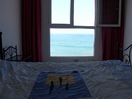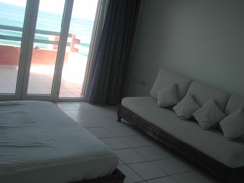 Der Sandstrand ist direkt vor der Tür. Auf dem Balkon